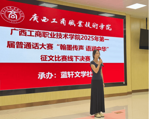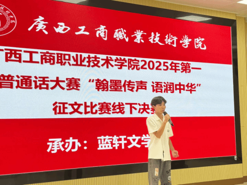 我校第一届“翰墨传声,语润中华”征文比赛决赛在武鸣校区A3-101教室圆满落幕。此次比赛面向广西工商职业技术学院全体学生征集征文作品由蓝轩文学社团承办举行。本次活动作为今年全国推广普通话宣传周的重要系列活动之一,旨在弘扬中华优秀语言文化,增进学生写作表达技巧与全面素质。一笔一画书汉字风骨,一言一语展中华气象。“翰墨传声 语润中华”普通话征文大赛,在朗朗书声与阵阵掌声中落下帷幕。